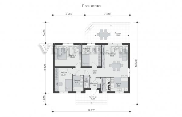 | Размеры дома: | 13.58м×12.72м |