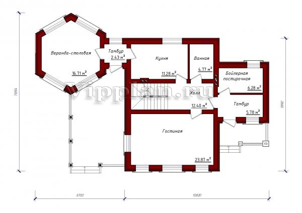 | Размеры дома: | 10.82м×9.99м |